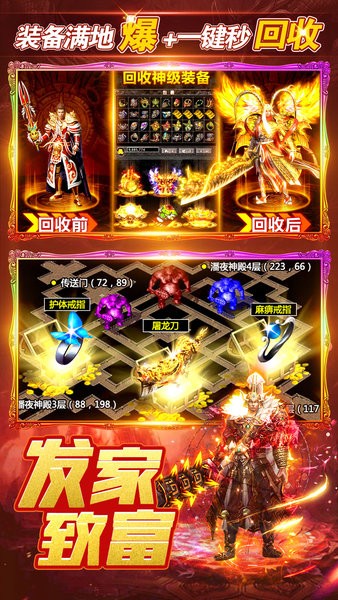 烈火一刀手机版是一个采用魔幻战争题材打造的多人即时对战类传奇手游。游戏内拥有独特的装备强化和属性成长系统,以及抢BOSS玩法、休闲玩法,在秉承经典的同时,也让它们更具特色,与你一起回味精彩传奇世界。
