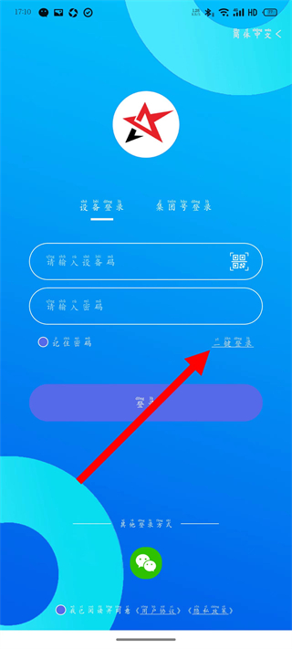 1、打开智安星定位器,点击设备登录,输入设备号和输入密码后,点击登录。