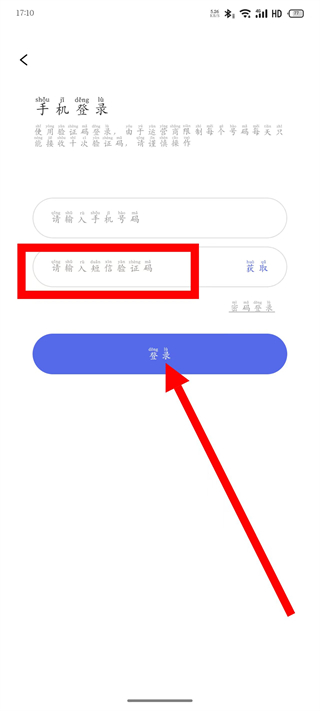 4、在手机登录页面,输入手机号码,点击获取验证码。