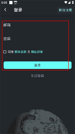 3、在注册页面,点击前往登录选项,切换至登录页面。