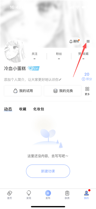 2、在个人中心页面,点击右上角的菜单按钮,展开功能列表。