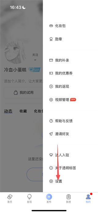 1、在透明标签的首页,点击底部的我的选项,进入个人中心页面。