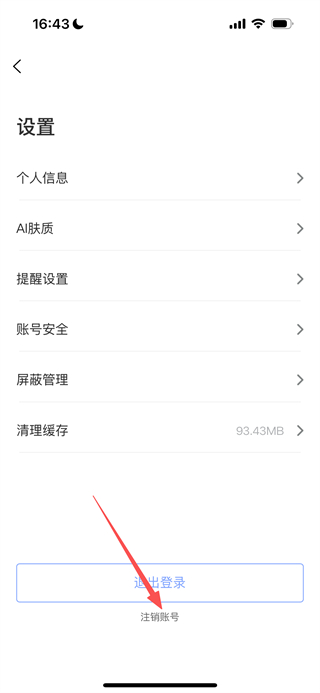 4、在设置页面,点击注销账号选项,弹出注销确认弹窗。