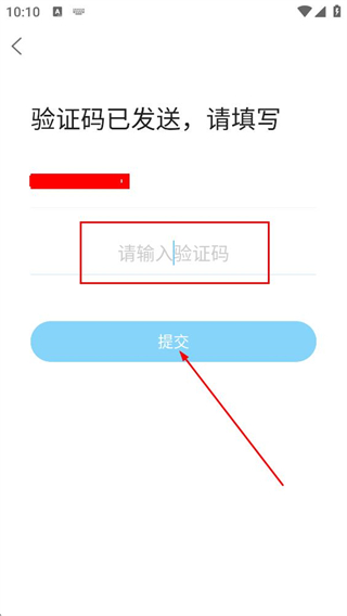 5、在验证码填写页面,填写收到的请输入验证码,点击提交按钮完成账号注册。