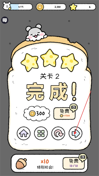 4、获得关卡2完成提示,可领取奖励,点击对应按钮进入后续环节。