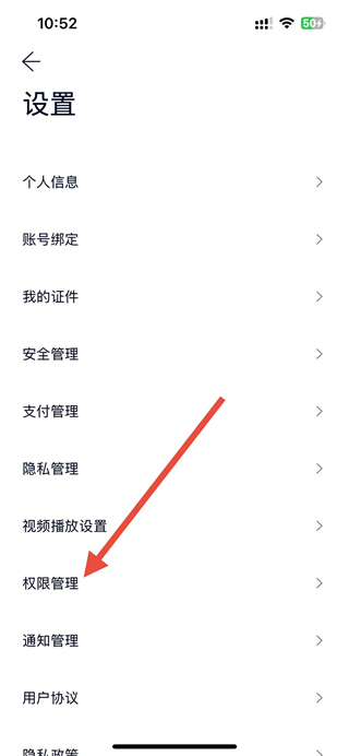 3、在设置页面中,找到权限管理选项并点击,进入权限相关页面。