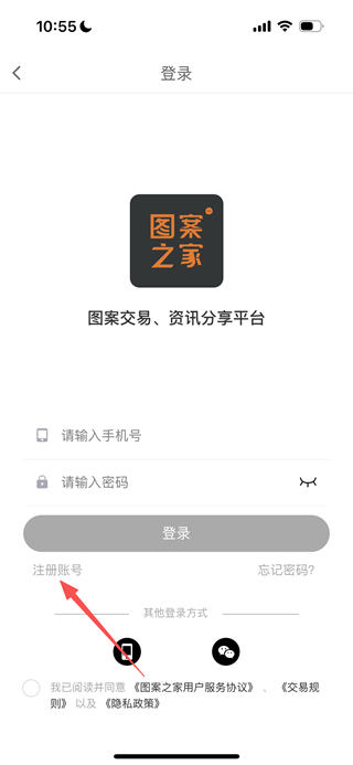 1、在图案之家首页,点击底部的我的选项,进入登录页面。