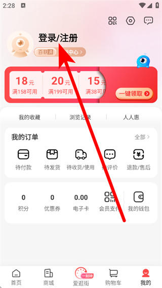 2、在我的页面,点击登录注册,进入账号密码登录界面。
