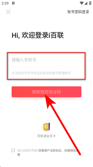 3、在登录页面,输入手机号,点击获取短信验证码。