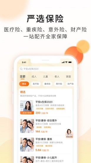 平安健康保官方版是一款专业的保险服务软件,用户下载app之后即可通过手机端随时随地了解各种保险类型,从老人到儿童,从医疗到财产,丰富的保险产品可以满足大家的保障需要。还有超高保险费率优惠等待大家的领取,赶紧下载平安健康保官方版看看吧。
