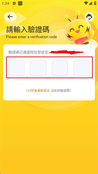 4、在输入短信验证码页面的输入框中填写收到的验证码,完成账号的登录操作。