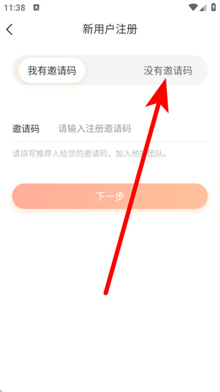 2、在新用户注册页面,点击没有邀请码,切换至无邀请码注册模式。