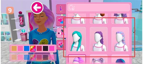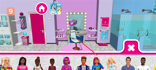 1、进入芭比娃娃屋历险的美发室场景,点击场景内的理发椅,从角色列表中挑选想要装扮的角色。