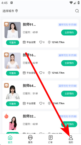 界面按服务品类、技师选择、订单管理清晰分类,核心功能入口突出,无需专业知识,不同年龄段用户均可快速上手完成预约。