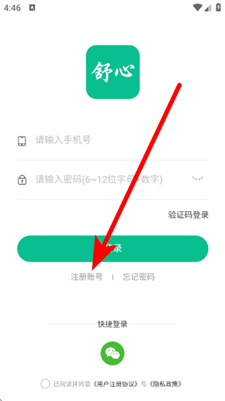 3、在登录页面,点击注册账号,进入注册界面。