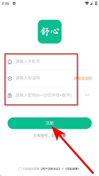 4、在注册页面,输入手机号与验证码,设置密码,勾选协议后,点击注册,完成注册。