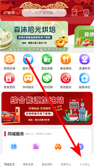 1、打开广安同城,点击底部的个人中心,进入个人中心页面。