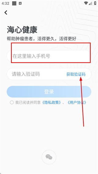 2、在手机验证登录页面填写手机号,勾选协议后,点击获取验证码。