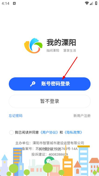 2、在登录页面,点击账号密码登录,进入账号密码登录页面。