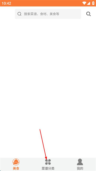 2、在主界面底部导航栏,点击菜谱分类选项,进入菜谱分类页面。