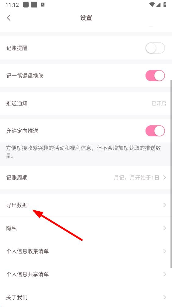 3、在设置页面里,向下滑动找到并点击导出数据选项。