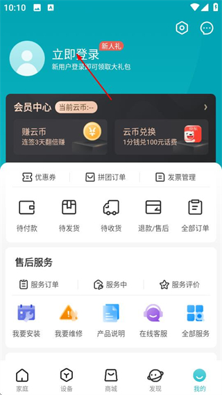 1、在云米首页,点击底部的我的选项,进入个人中心页面。
