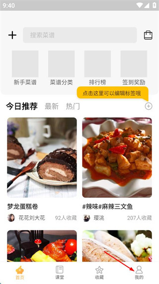 3.要找回自己浏览过或者搜索过的菜式,也非常简单,每个页面下方都有历史和收藏夹的菜单。