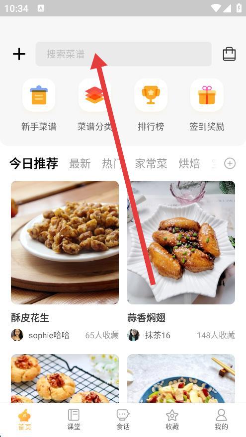 1、打开网上厨房app,进入首页,点击顶部的搜索框。