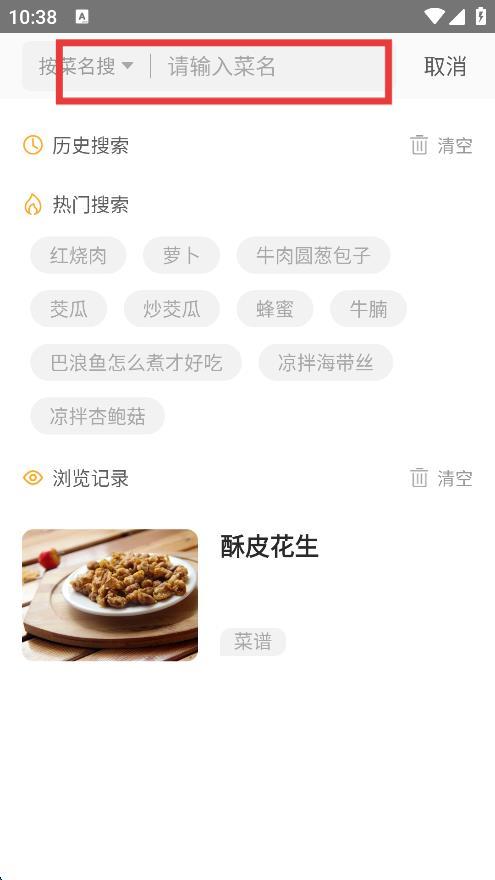 2、在弹出的搜索界面中,输入想要查找的菜谱名称点击搜索。