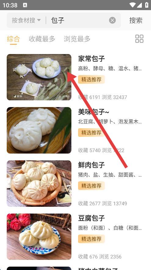 3、在搜索结果页面里,找到想要收藏的菜谱,点击进入菜谱详情页面。