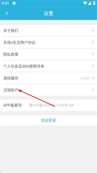 3、在设置页面点击注销账户选项,进入注销账户页面。