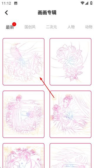 2、在画画专辑页面,选择目标填色作品,进入填色操作页面。