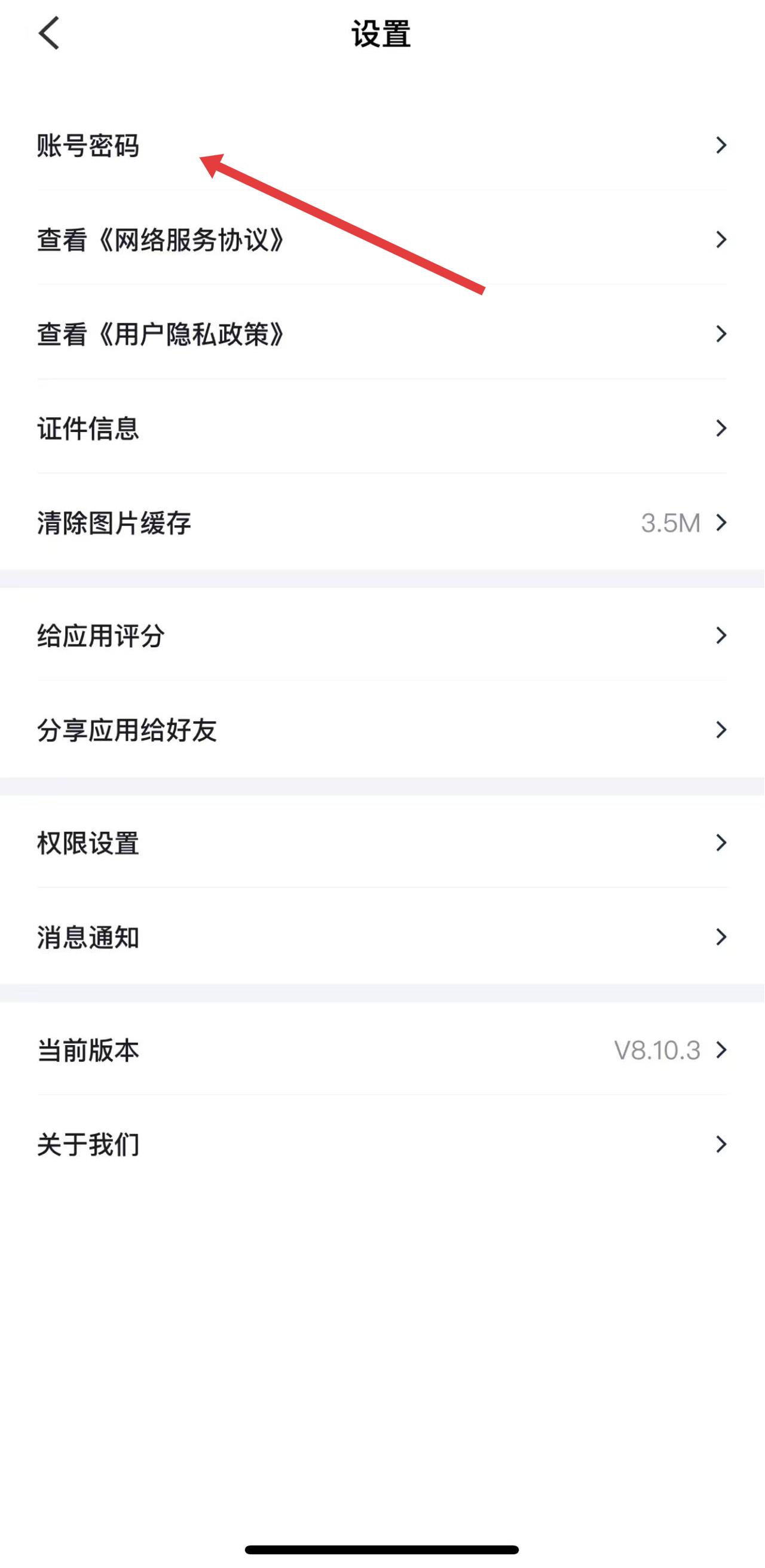 2、在设置界面里,点击账号密码选项。