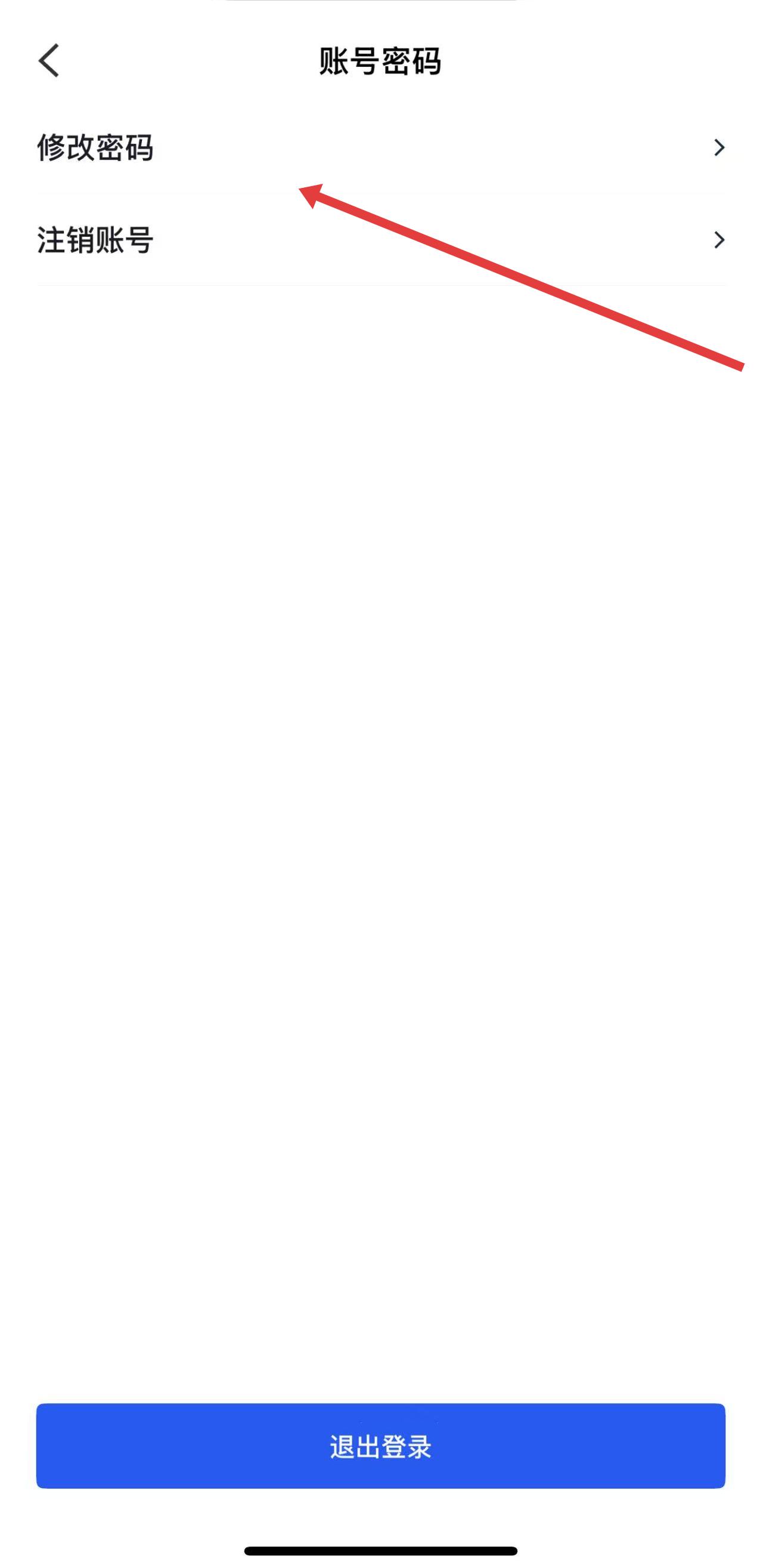 3、进入账号密码页面后,点击修改密码选项。