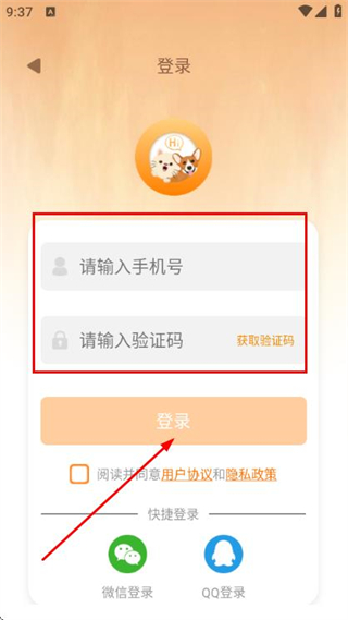 3、在登录页面填写手机号和验证码,勾选协议后,点击登录完成账号登录操作。