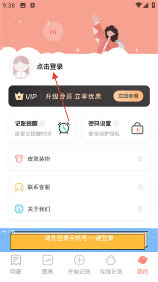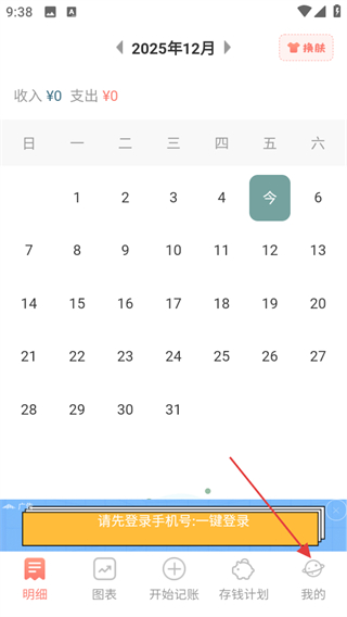 1、在随时记账的明细页面,点击底部的我的选项,进入个人中心页面。
