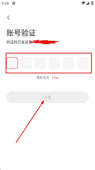 3、在注册账号页面填写验证码后,点击注册按钮完成账号注册操作。