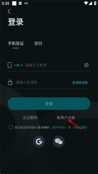 1、在登录页面点击新用户注册选项,进入注册账号页面。