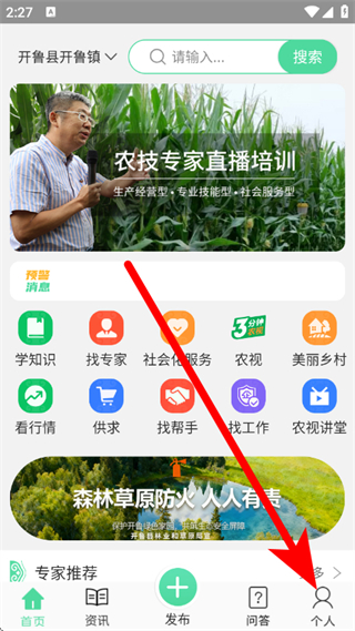 1、打开开鲁农牧业,点击底部的个人,进入个人页面。
