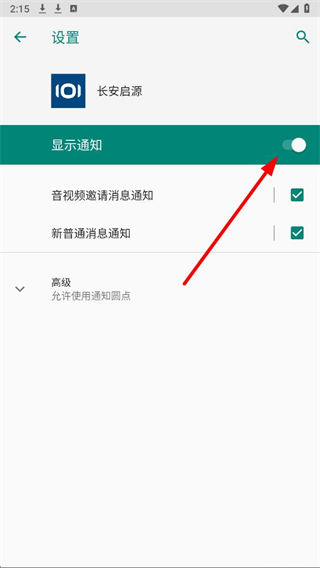 4、在通知管理页面,找到显示通知对应的开关,点击该开关即可关闭全部推送消息。