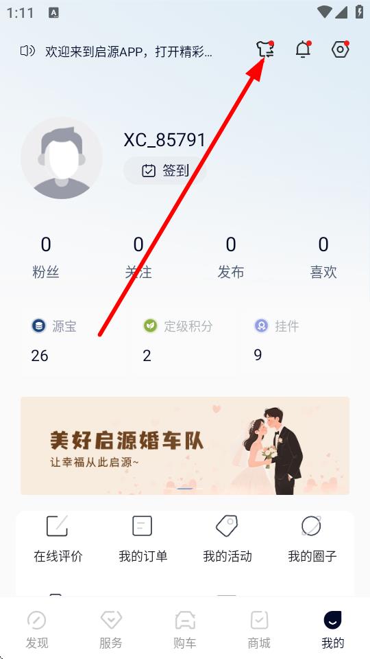1、打开欧尚汽车APP,点击底部导航栏中的我的进入个人中心页面。