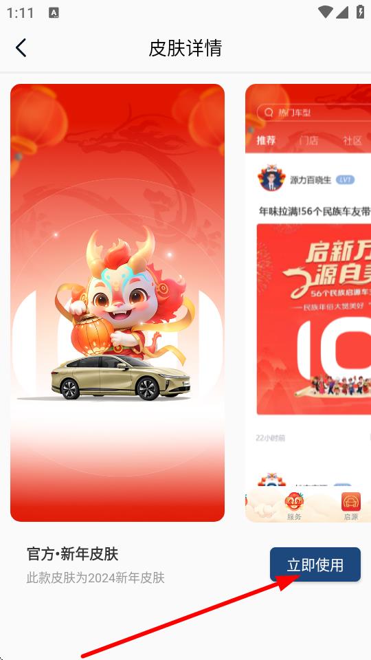 4、点击想要设置的皮肤,进入皮肤详情页面,再点击立即使用,即可完成皮肤设置。