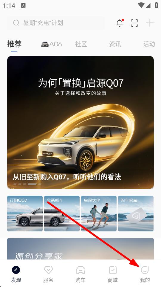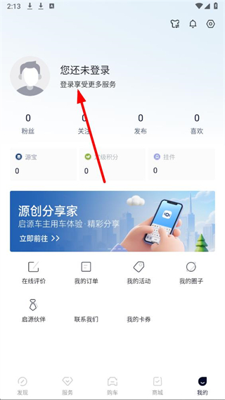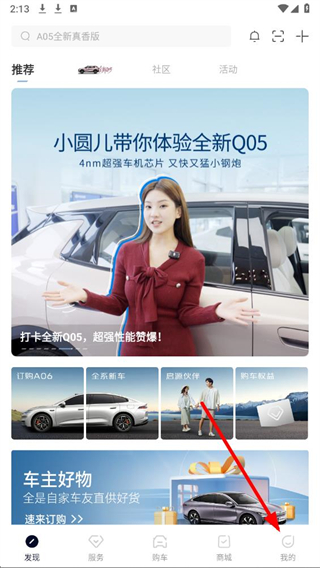 1、打开欧尚汽车app,点击底部导航栏中我的进入个人页面。