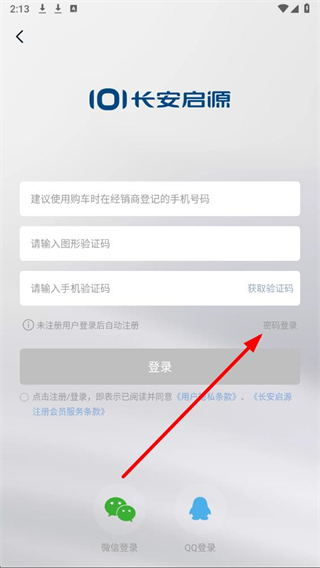 3、在登录界面中,找到密码登录选项并点击,切换至账密登录模式。