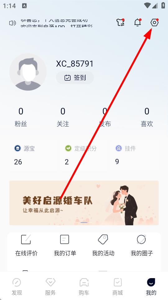 2、在个人页面右上角点击设置图标,进入设置界面。