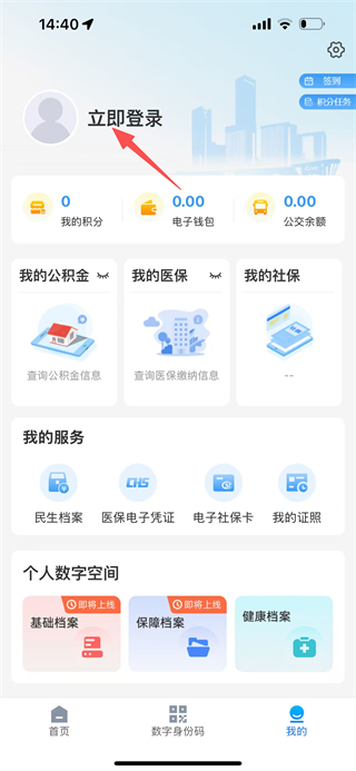 3、在个人页面,点击立即登录选项,进入泰州通的登录页面。