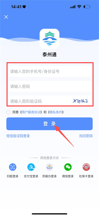 4、在登录页面,填写手机号、密码、图形验证码,点击登录,完成账号登录。