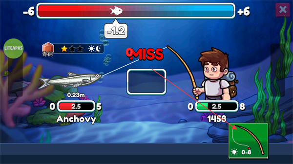 3、若出现MISS,及时调整力度,保持钓竿力度与鱼的拉力平衡。