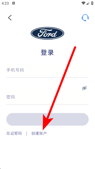 3、在登录页面,点击创建账户,进入创建账号页面。