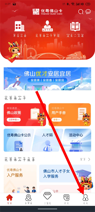 1、打开优粤佛山卡,点击底部的我的,进入个人页面。